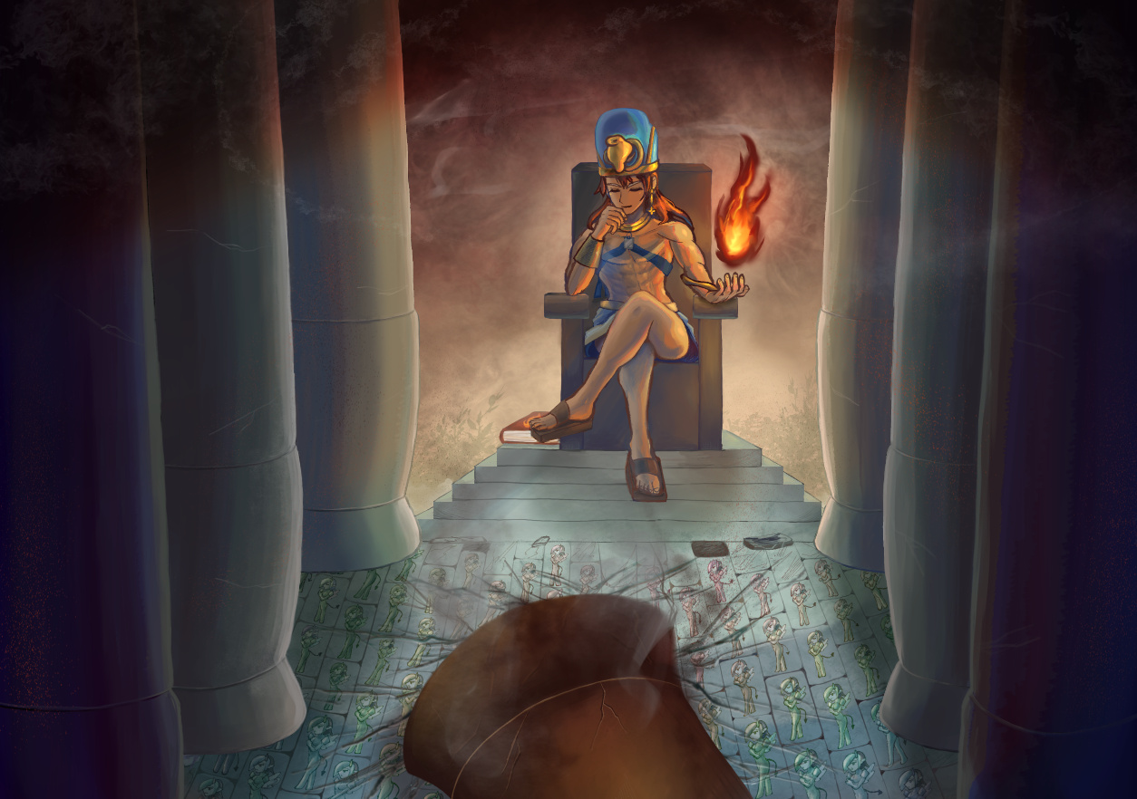 敵側の陣営に属しつつも敵側も憎んでいる為、王の間もタイルも壊せて嬉しい♪な感じで不敵な笑みを浮かべる地獄みたいな絵