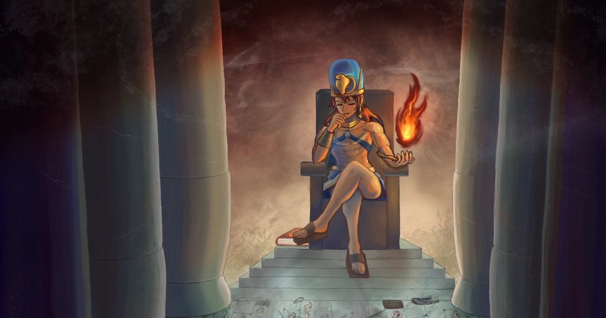 敵側の陣営に属しつつも敵側も憎んでいる為、王の間もタイルも壊せて嬉しい♪な感じで不敵な笑みを浮かべる地獄みたいな絵