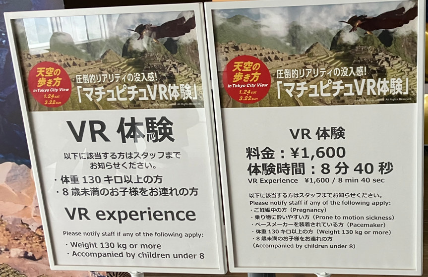 東京シティビュー+マチュピチュVR体験の感想
